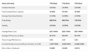 • The site will experience some degradation in hashrate in October through December related to the turnover in customers.